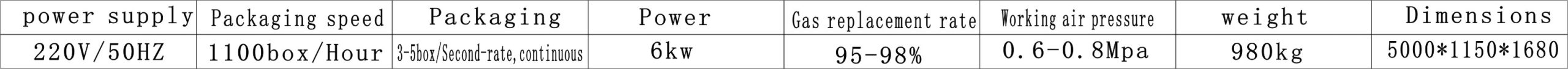 1. This machine is suitable for box packaging of various foods, and can automatically and continuously complete the steps of vacuuming, automatically filling mixed fresh-keeping gas (usually CO2, N, 0), filling, sealing, cutting, and discharging finished products;