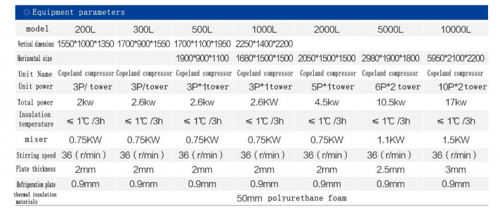 The refrigeration tank consists of a tank body and a compressor. The tank wall uses advanced honeycomb panels for direct heat exchange and refrigeration with the milk. The refrigeration compressor uses a fully enclosed Copeland compressor unit from the USA, along with imported expansion valves and solenoid valves equipped with a reliable midpoint protector to prevent compressor burnout due to overload or system failure. The tank body is made of SUS304 stainless steel and features a pressurized automatic rotating cleaning CIP spray head and an automatic stirring device. The insulation layer uses polyurethane foam, providing excellent thermal insulation performance.